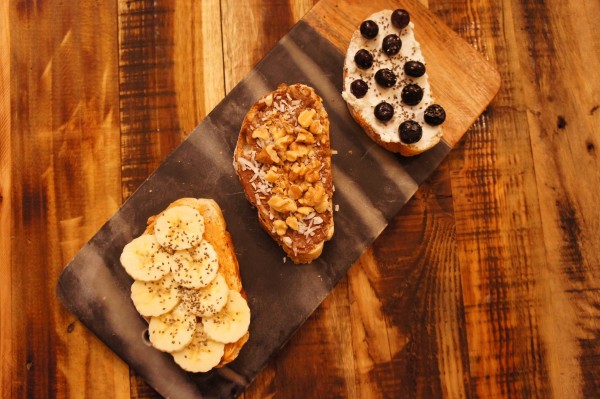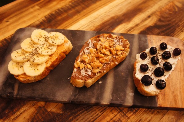 「花生醬 香蕉 奇亞籽」不會過於甜膩的花生醬與新鮮香蕉吃來滋味濃郁,再交由奇亞籽增添口感,第一次吃到乾燥的奇亞籽,帶著顆粒感的奇亞籽就像芝麻一樣能夠替食物增添豐富口感!