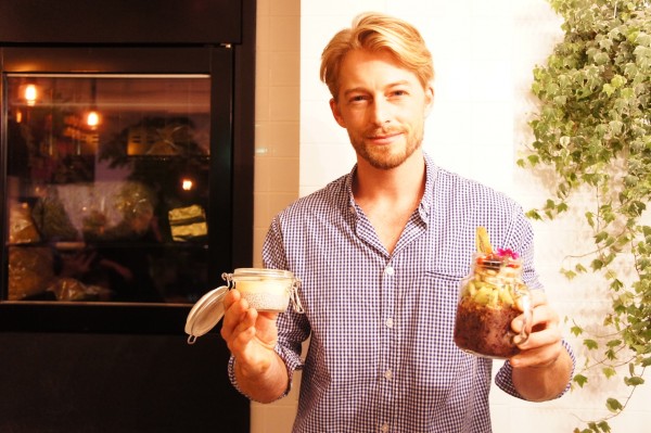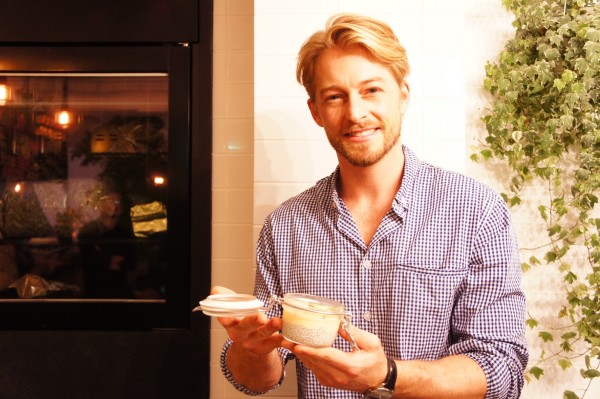 這時候不放張法比歐的照片實在太對不起各位法太太了,法比歐手上拿的就是Yucca Cafe的兩樣人氣甜點「巴西莓罐」和「奇亞籽布丁」,