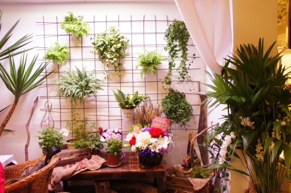 這面牆是Yucca Cafe的特色之一,整面白牆上掛滿的植栽,左邊的大盆栽就是Yucca Cafe名稱由來的植物唷!